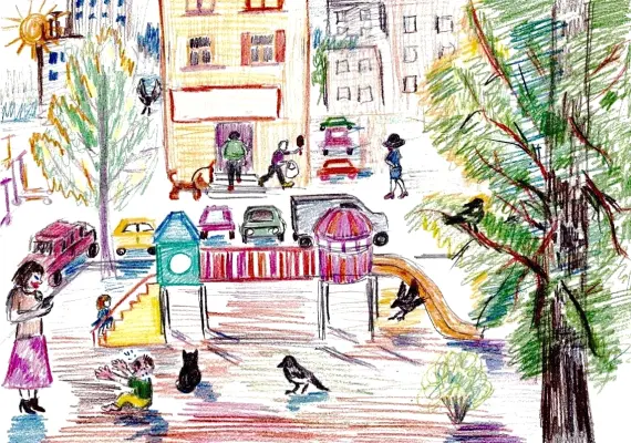 Двор — наше любимое место. Во дворе у нас происходит столько всего интересного: тут и футбол с пацанами гоняем, и девчонки на качелях летают, и бабушки свои секреты рассказывают.