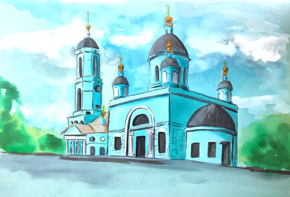 Я нарисовала акварелью Храм Сергия Радонежского в Рогожской слободе. Мне кажется, он отличается от многих других храмов необычным цветом и сразу привлекает внимание.