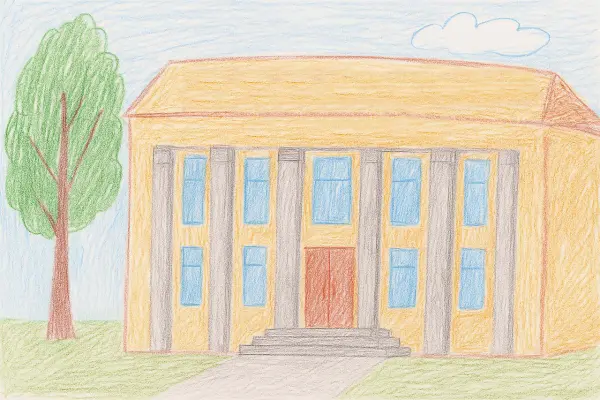 Рисунок изображает Российскую государственную библиотеку, величественное здание, доминирующее в архитектурном облике района Якиманка. Центральное место композиции занимает масштабное здание библиотеки, его строгие, монументальные формы переданы с точностью.