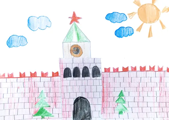 Я нарисовала символ моего любимого города Москвы-Кремль. Я очень люблю гулять в центре Москвы и любоваться на красивые кремлевские стены, башни и звёзды.