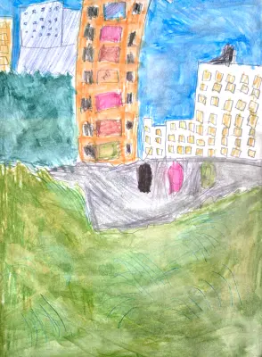 Любимый вид из окна моей квартиры. Каждый день наблюдаю, как меняется пейзаж и вид. Летом очень много зелени. Осенью деревья одеваются в разноцветные наряды. Зимой белые шапки укрывают их от холода. А весной опять все просыпается и становится зеленым.
