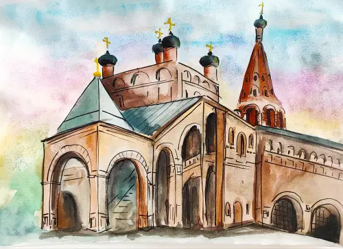 Я нарисовала Успенский храм в Крутицком подворье. Это любимое место в моем районе. Я часто там бываю и все время удивляюсь красоте старинной архитектуры.