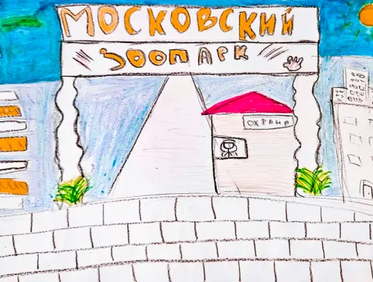 Московский зоопарк этим летом. Рисунок выполнен карандашом и маркерами.