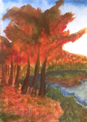 Я изобразила Измайловский парк осенью, когда все деревья становятся "золотыми". В нашем районе два парка: Тепроецкая дубрава и Измайловский парк. Можно дойти пешком или проехать на автобусе.