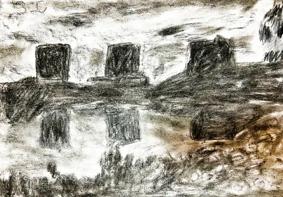 Прекрасный пруд расположился в районе Очаково-Матвеевское. Называется он Большой Очаковский. Мы нарисовали его прекрасные виды на пленере. Использовали уголь и акварельную бумагу формата А3.