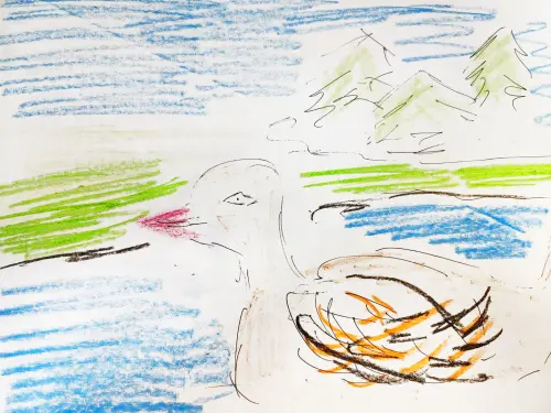 Утка в центральном парке. Уже несколько лет на большом и малом прудах установлены домики для уточек.