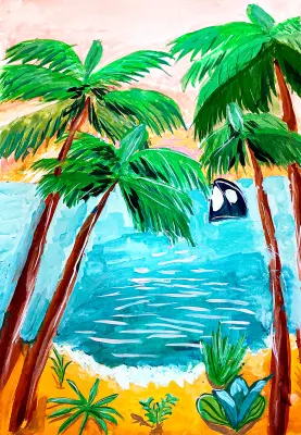 На рисунке изображена тропическая оранжерея парка «Царицыно». В оранжерее можно увидеть различные экзотические растения, в том числе пальмы, цитрусовые, бананы, а также пряные травы, которые выращивались здесь еще во времена Екатерины II.