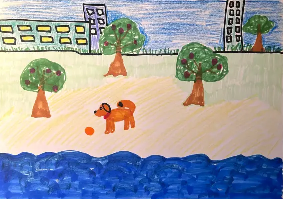 моего пса зовут Рыжик и мы с ним гуляем в нашем дворе каждый вечер. ему нравится бегать на своей площадке. там мы встречаем других собачек, которые гуляют со своими хозяевами
