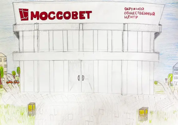 Работу назвали «Любимый Моссовет», так как ходим на занятия в окружной общественный центр имени Моссовета. Работа выполнена с использованием карандашей, фломастеров, и ручки.