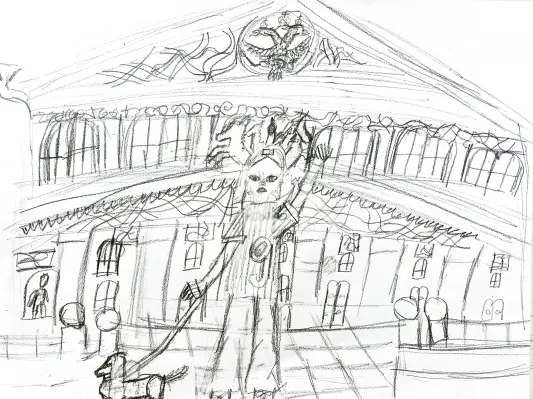 Ой, это было просто супер! Мы с Фаней (это моя собака, она такая пушистая, как облачко!) пошли гулять к Большому театру. Мама сказала, что там очень красиво.