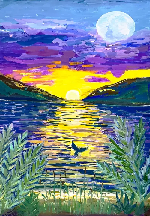 Парк музея-заповедника «Царицыно» очень хорош в вечернее время. На рисунке изображена набережная Царицынских прудов. Вечерами в парке работает красивый светомузыкальный фонтан.