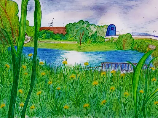 Обожаю наш Батюнинский пруд, как ни придешь – там красота! Я очень люблю там гулять и наслаждаться природой. Работа выполнена цветными карандашами.