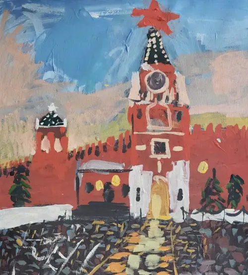 Всем привет, я Даня. Мне 7 лет и в сентябре я пойду в первый класс. Наша страна-самое большое государство в мире, а сердцем является Московский Кремль. Я был в Кремле несколько раз, с папой и младшим братом, а так же с дедом. Я искренне восхищаюсь этим прекрасным памятником нашей истории и культуры. Моя работа написана темперными красками, размер 30×40.