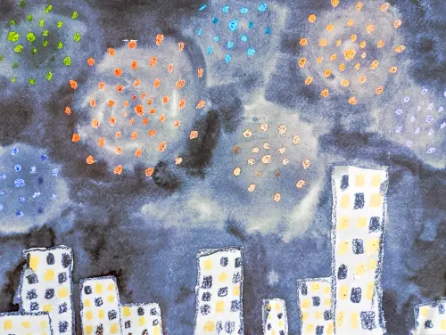 Когда в нашей стране празднуют большие праздники, например День Победы, вечером все небо озаряется разноцветными огнями - это праздничный салют. Из моего окна видно, как в небо взмывают огни и все небо освещается волшебным светом.