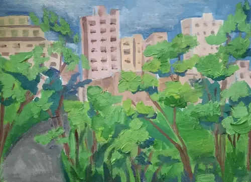 Это мой район, я живу в самом высоком доме на 10 этаже. Я люблю смотреть вечером из окна моей комнаты на машины, иногда с братом мы играем в игру: "кто быстрее найдет".