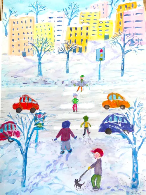 Зимой все улицы кажутся белыми. Я очень люблю свою улицу, покрытую пушистым снегом и сверкающую на солнце. Когда мы с подругами возвращаемся из школы в зимний день, то обязательно ненадолго останавливаемся во дворе и катаемся с горки.