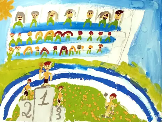 Я учусь в школе. В нашей школе проходит много интересных занятий. Мне больше всего нравятся спортивные соревнования. Они проходят на нашей спортивной площадке, которая очень красивая. Я часто участвую в соревнованиях, и просто играем с ребятами после школы на площадке.