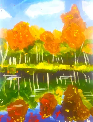 Пруд Зюзино всегда восхищает всех отдыхающих! В своей работе я хотела отразить всю красоту и разнообразие красок нашего района! Мы любим там гулять всей семьёй! Наш парк украшает озеро, где плавают уточки! Мы часто их кормим! Я очень люблю свой район и особенно парк Зюзино!