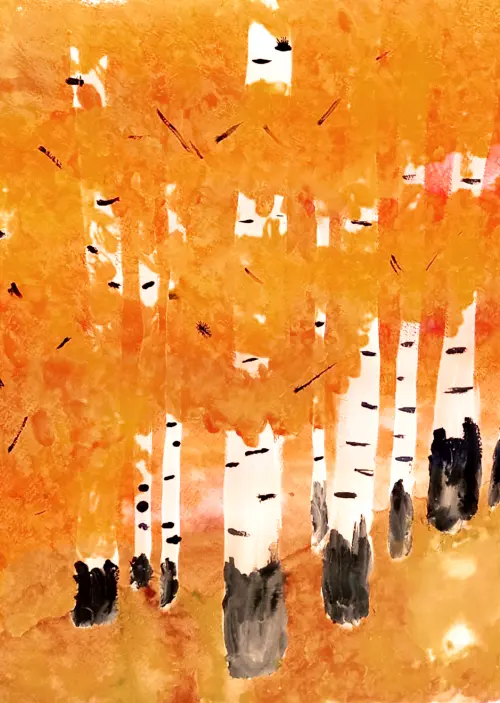 Мне нравится рисовать осенние деревья, когда они покрыты жёлтыми листьями, и осень от этого кажется теплее и солнечнее. У нас в районе Измайлово есть лес, где мы гуляем и любуемся природой.