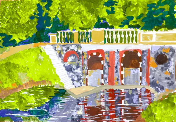 В центре композиции — архитектурное сооружение, построенное в 1731 году знаменитым архитектором Ф.Б. Растрелли. Юная художница мастерски передала особенности этого уникального памятника: богатое скульптурное оформление, изящные линии и архитектурные детали.