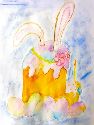 В сиянии пасхальной ночи, где звезды тихо льют лучи, стоит кулич, как символ очи, в венце из сахарной свечи. Свеча горит, не угасая, как вера в сердце у людей, и воск, стекая, тает, зная, что свет сильнее тьмы теней.