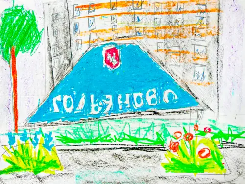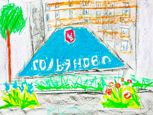 Я живу в районе Гольяново, у нас много красивых мест. Я нарисовала вывеску с названием района, потому что она большая и красивая, и рассказывает всем гуляющим в нашем районе, что этот прекрасный район называется Гольяново!
