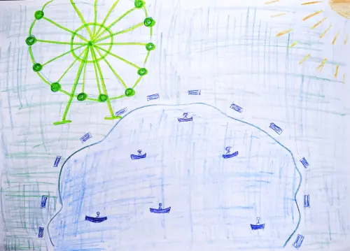 В нашем районе есть большой и красивый Измайловский парк. Недавно мы с родителями ходили туда гулять и катались на лодках на пруду. Там очень красивый остров. А потом мы пошли на колесо обозрения и смогли посмотреть на всю Москву с высоты.