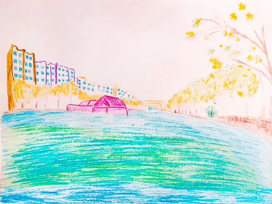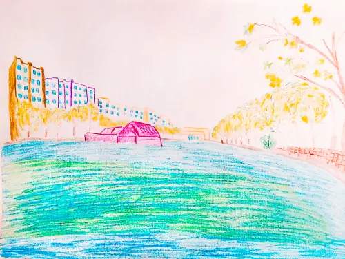 Рисунок раскрывает красивейшее место Центрального округа Москвы - Чистые пруды. Рисунок передаёт атмосферу бульвара, разноцветные переливы воды, исторические особняки, окружающие пруды. Настоящий умиротворяющий оазис спокойствия в самом центре мегаполиса.