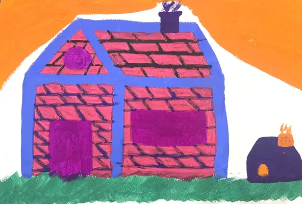 Рисунок, который я нарисовала, изображает уютный домик, затерянный среди зелени лесопарка Тропарёво. Передает атмосферу спокойствия, уединения и единения с природой.