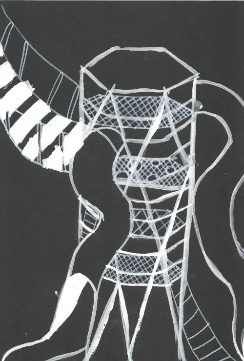 Я нарисовала детскую площадку недалеко от моего дома. Мне она очень нравится - в ней есть разные уровни, можно лазить по ним с друзьями. Очень здорово!