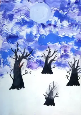 Мне очень нравятся деревья в нашем дворе, особенно когда они зимой в снегу. Очень люблю рисовать зимние пейзажи и помогать вместе с родителями птицам и животным зимой.