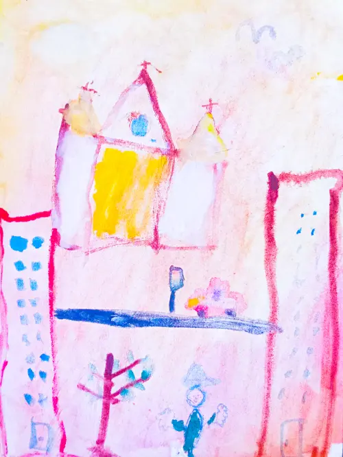 Создал рисунок своего родного района — места, где появился на свет. Этот уголок города особенно близок моему сердцу. Рядом расположен просторный парк с живописным прудом, а чуть дальше начинается густой лес, куда мы часто отправляемся на прогулки всей семьёй.