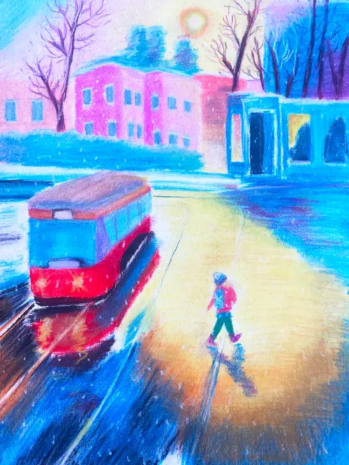 Трамвай, словно светлячок, скользит по рельсам, унося пассажиров вглубь московских переулков. В этом кадре застыла тихая красота, знакомая каждому, кто хоть раз гулял по этим уютным улочкам. Вспоминается что-то теплое и родное, словно мелодия из детства.