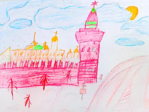 Снег шёл совсем недолго. Облака разгонял ветерок. На небе из-за тучек стало подмигивать солнце. Город оживал. Башенки Кремля казались ещё ярче в лучах зимнего солнца.