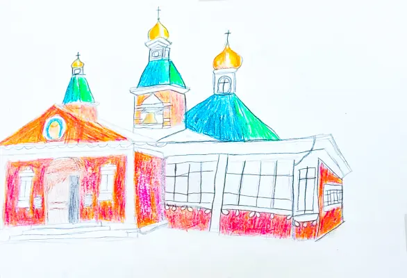 Я живу в районе Богородское. Иногда бываю в Богородском храме, вот его и решила нарисовать. Формат моей работы а3, рисовала цветными карандашами. Я люблю свой район.