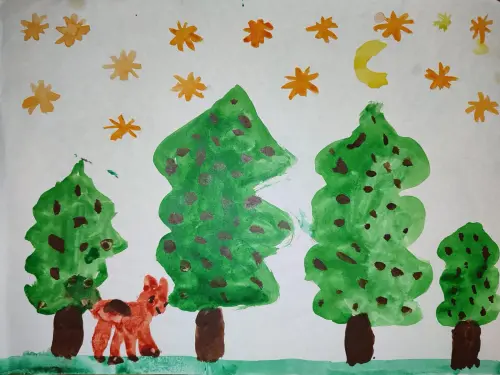 Я нарисовал свой двор, там растут очень высокие ели, и это очень красиво, зимой они покрываются снегом и создают новогоднее настроение и новогоднюю атмосферу