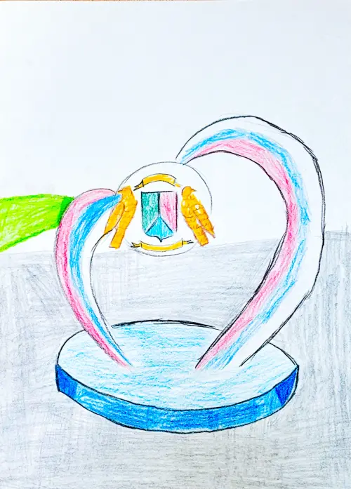Мой район Богородское. Я тут живу. Я люблю свой район, поэтому решила нарисовать такую картину. Стелу я видела около черкизовских прудов. Я работала цветными карандашами, формат а4.