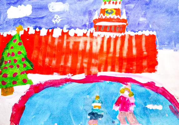 Однажды мы встречали Новый год на Красной площади. Мне очень понравилось так встречать праздник. То, что мне запомнилось, я решила нарисовать.
