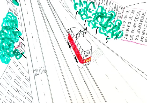 Меня зовут Артём, мне 8 лет. Я со своей семьёй живу в Академическом районе на улице Кржижановского. У нас там есть трамвай № 26, который довозит нас всей семьёй в торговый центр РИО. Когда я вырасту, то обязательно стану водителем трамвая.