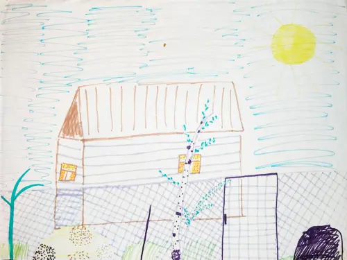 Я нарисовал свой дом. Он очень красивый и уютный. В моем доме живут мама, папа и мой старший брат. Я хочу, чтобы они мне купили котенка, я бы назвала его Барсик.
