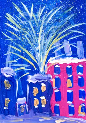 Праздничный салют в честь Нового Года. Яркие огни освещают московское небо, дарят всем вокруг ощущение радости и веселья. Смотришь на них и веришь, что все твои желания обязательно сбудутся!