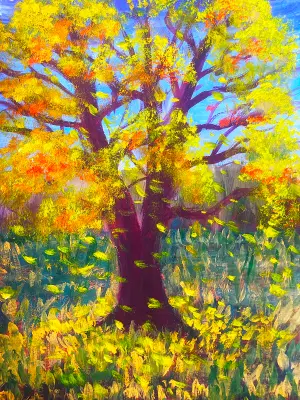 Золотая осень щедро рассыпала свои краски над старинным парком Кусково. В самом сердце этой осенней симфонии возвышается величественный старый дуб. Его могучие ветви, словно руки, тянутся к небу, усыпанные багряными и золотыми листьями.