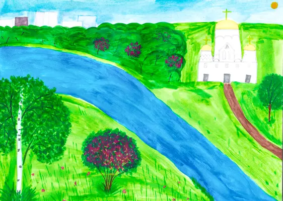 Моя работа посвящена моему любимому парку 850-летия Москвы, в котором я гуляю почти каждый день с самого рождения. Я живу рядом с этим замечательным местом, сейчас здесь проходит моё лето, это моя малая родина. На рисунке я изобразил вид из моего парка на Храм в честь Чуда Архангела Михаила на противоположном берегу Москвы-реки весной, когда цветёт сирень. Я очень люблю это живописное место, где каждый может найти себе отдых или занятие по душе.