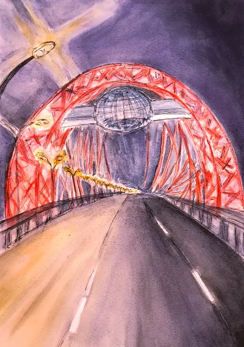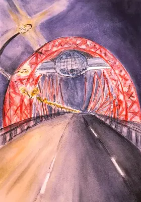 Проезжая вечером по Крылатскому мосту на машине, мне понравилось как он выглядит и я решила его запечатлеть. Это взгляд на мост из окна проезжающей по нему машины.