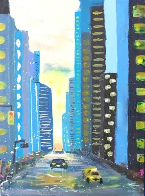 Моя работа - это творческая фантазия на тему моего района Фили-Давыдково. Люблю рисовать и часто рисую. Кастанаевская улица в районе Фили-Давыдково самая любимая.