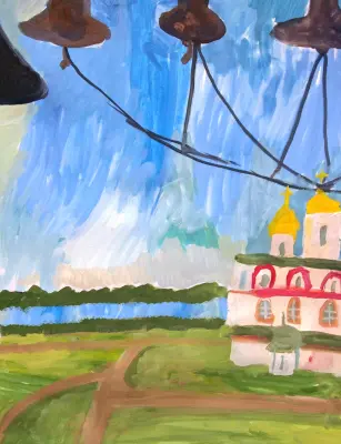 Вид на Дворцовый пруд на территории усадьбы «Кусково». Перед нами открываются необыкновенные просторы имения графов Шереметевых. Работа формата А3, техника «гуашь».