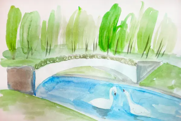 Больше всего я люблю рисовать акварелью, мне нравится как размывается картинка и легко ложится краска, как рисунок получается красивым и воздушным. Я нарисовала пейзаж