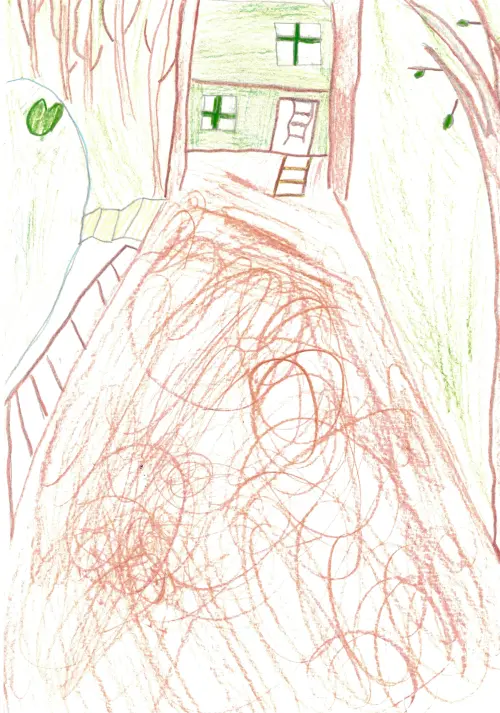 Я люблю гулять около дома, но дорога домой самая приятная. Я знаю, что дома меня ждет мой кот, бабушка и вкусная еда. Люблю рисовать то, что видела на прогулке.