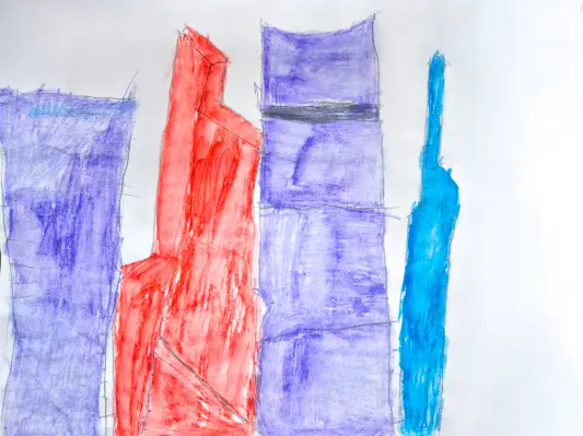 На рисунке я нарисовал «Москву-Сити». Я думаю, что скоро и в нашем районе появятся большие башни, современная Москва. Справа на рисунке я оставил пустое место для новой башни. Я люблю свой район и хочу, чтобы он развивался и процветал.
