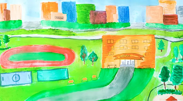 Школа - второй дом, где дают знания, а ещё тут классные лаборатории, игровые и спортивные площадки. Когда я вырасту, хочу стать строителем и строить крутые школы!